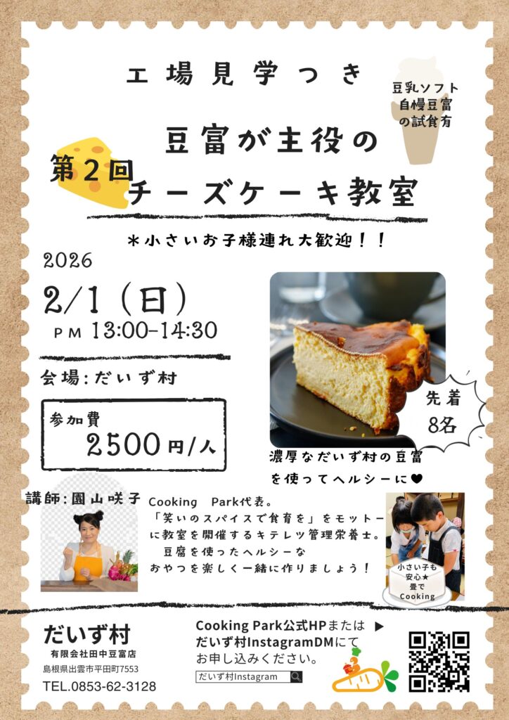 | お申込み方法 | だいず村 Instagram DM または「Cooking Park公式HP」 |